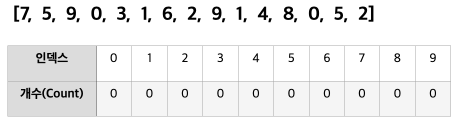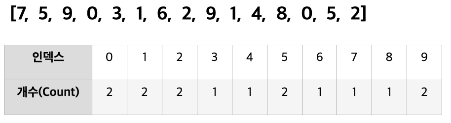 - 계수 정렬은 데이터의 크기 범위가 제한되어 정수 형태로 표현할 수 있을 때 사용 가능하다.