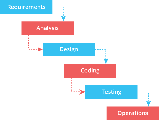 위 순서대로 진행하여 마치 폭포가 떨어지는 식으로 순차적인 단계를 밟는다고 하여 폭포수 방식 이라고 불립니다.