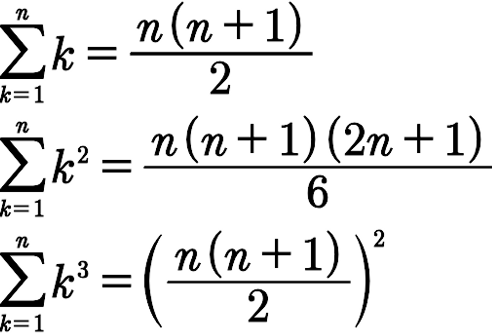 자연수 거듭제곱의 합을 구할 수 있는 공식이며 이미지를 참고 하세요